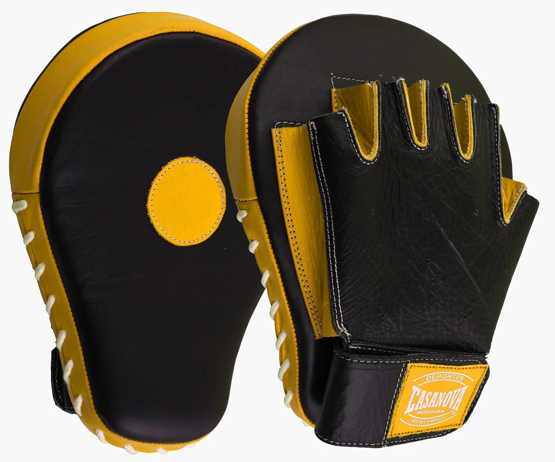 Professionally contoured, 2.5″ extra thick, the fingerless focus mitt is incredibly bold and built for battle. Added 1/4″ Casanova Boxing® Triangle T shock suppression layer on the face reduces impact on the trainer and affords athletes an ideal target zone with maximum realistic feel. Multi-layer, contoured foams affords trainers the ideal resistance required for every skill level athlete. Rubber palm ball inside the boxing mitts perfectly transforms to the trainer hand grip for a one-of-a-kind experience. 100% Full grain leather offers extended life.