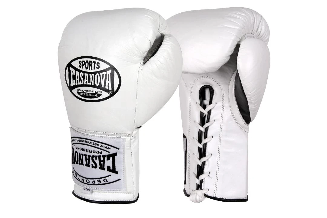 Pro Boxing Supplies Casanova Boxing® Professional Lace Up Official Fight Gloves – White