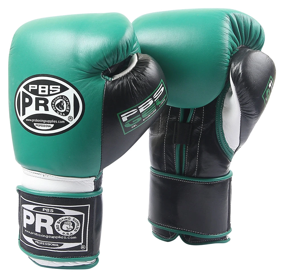Pro Boxing Supplies Pro Boxing® Series Gel Hook And Loop Gloves – Green With Black Thumb