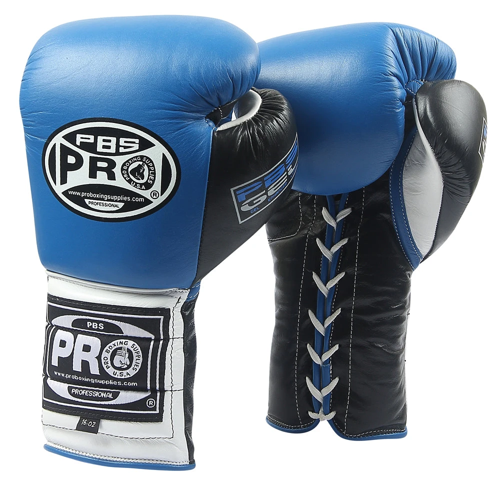 Pro Boxing Supplies Pro Boxing® Series Gel Lace Gloves – Blue/Black With Black Thumb
