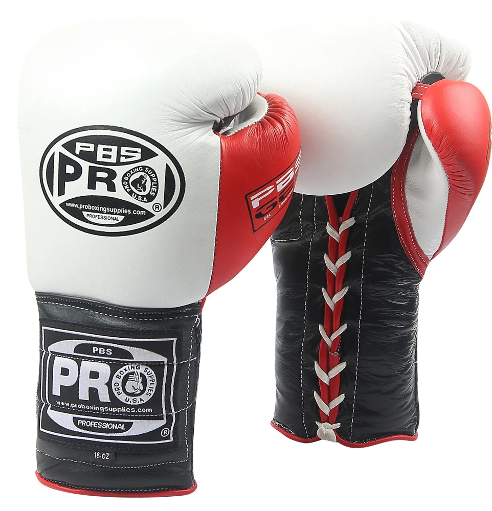 Pro Boxing Supplies Pro Boxing® Series Gel Lace Gloves – White/Black With Red Thumb