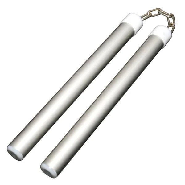Light weight 11″ nunchaku made of aluminum. Silver Color Only