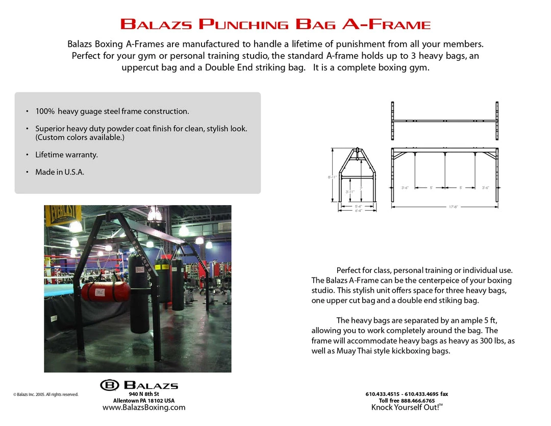 Beef up your boxing and kickboxing program with Balazs Boxing’s Standard “A-Frame”.